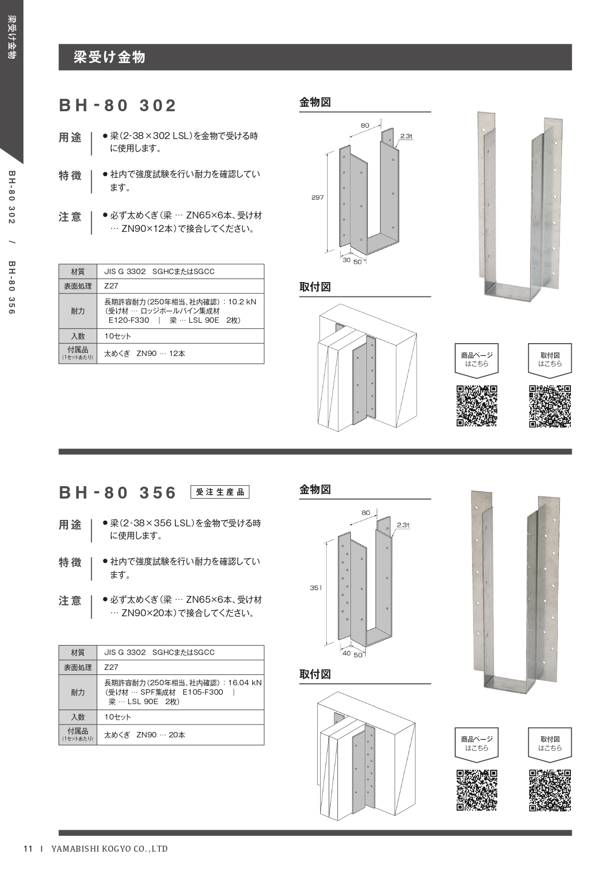 | 梁受け金物(釘タイプ) | BH-80 302 | 製品詳細 取付図 | ||||