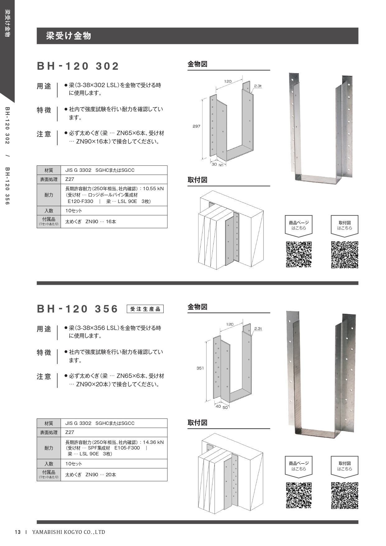 | 梁受け金物(釘タイプ) | BH-120 356 | 製品詳細 取付図 | ||||