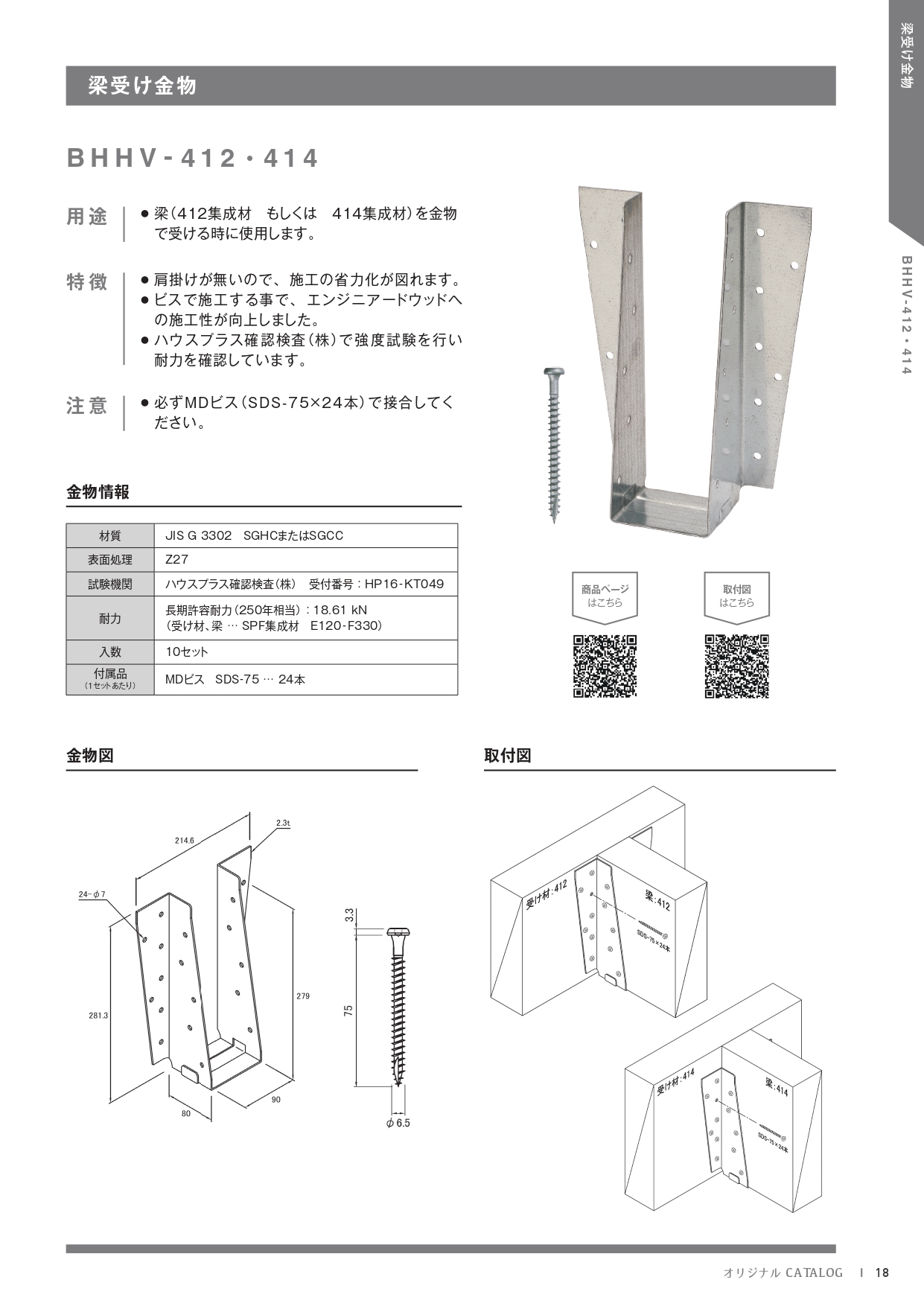 ・梁(412集成材 もしくは 414集成材)を金物で受ける時に使用します。