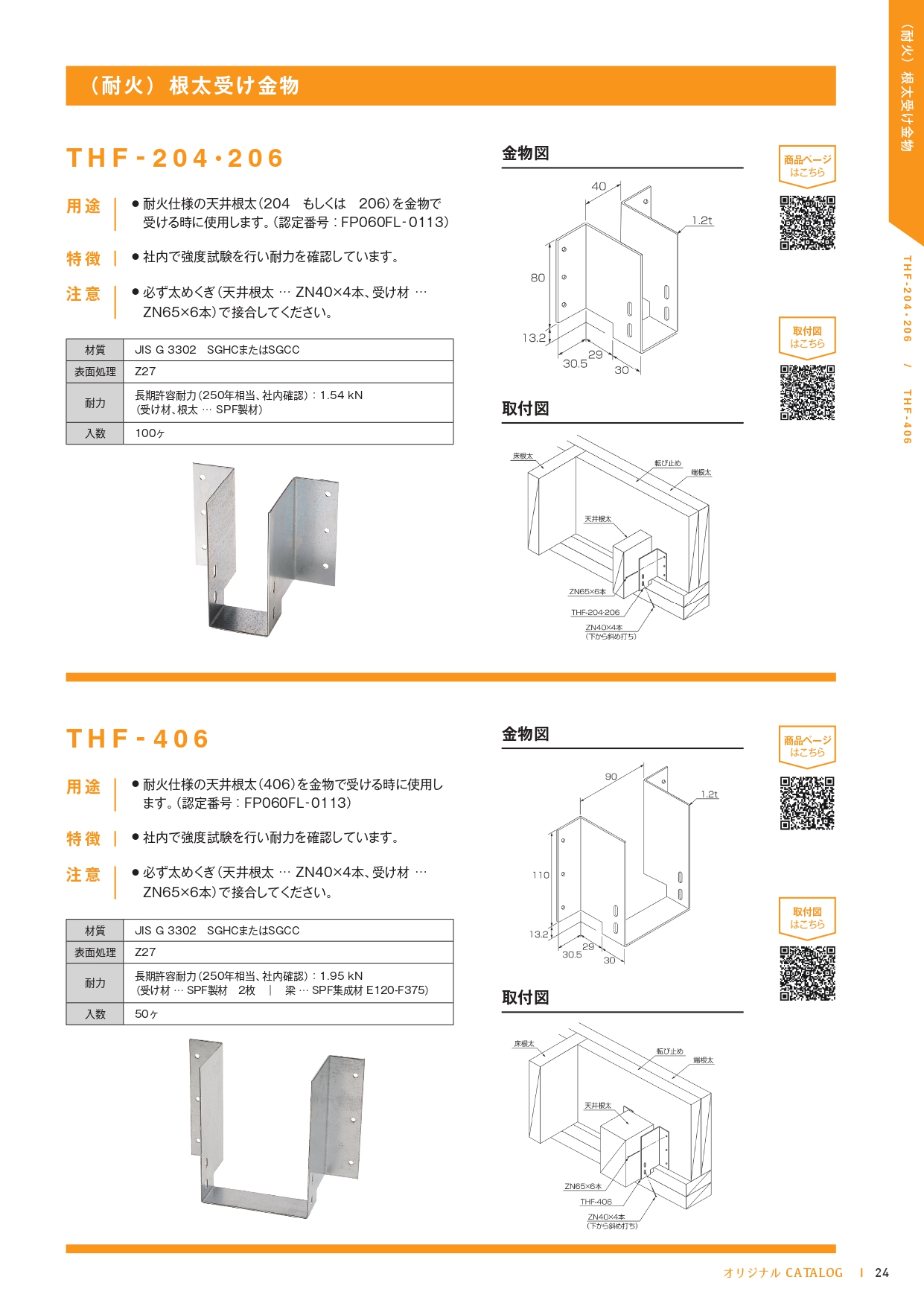 | (耐火)根太受け金物 | THF-204・206 | 製品詳細 取付図 | ||||