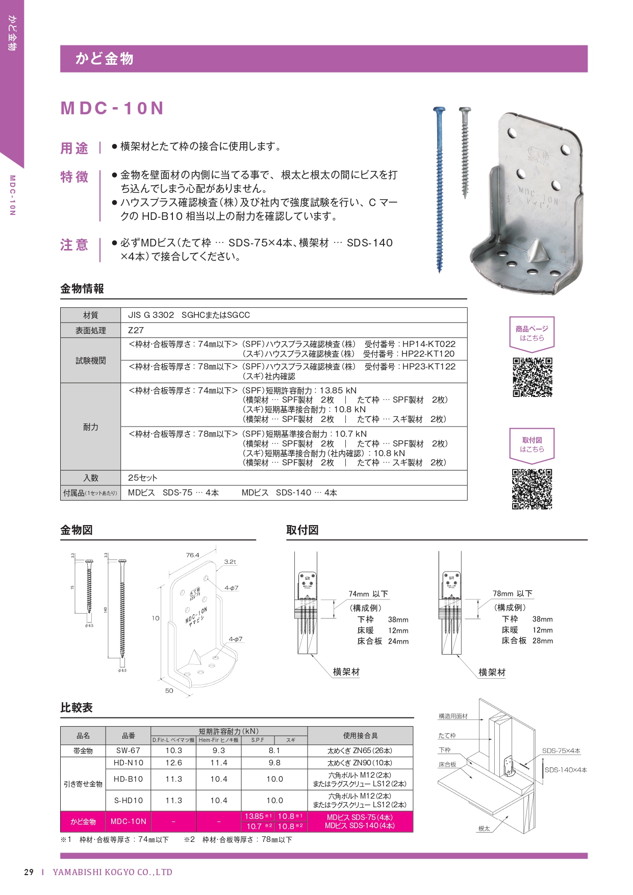 | かど金物 | MDC-10N | 製品詳細 取付図 | ||||