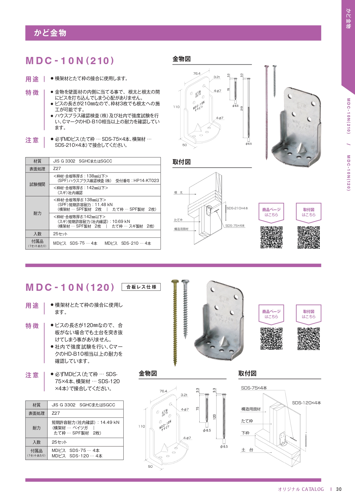 | かど金物 | MDC-10N(210) | 製品詳細 取付図 | ||||