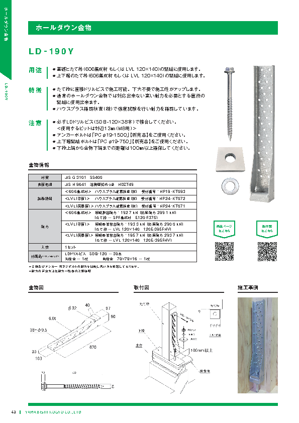 | ホールダウン金物 | LD-190Y | 製品詳細 取付図 | ||||
