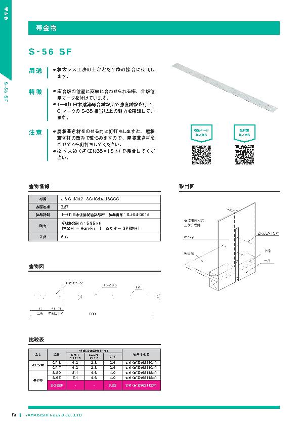 | 帯金物 | S-56 SF | 製品詳細 取付図 | ||||