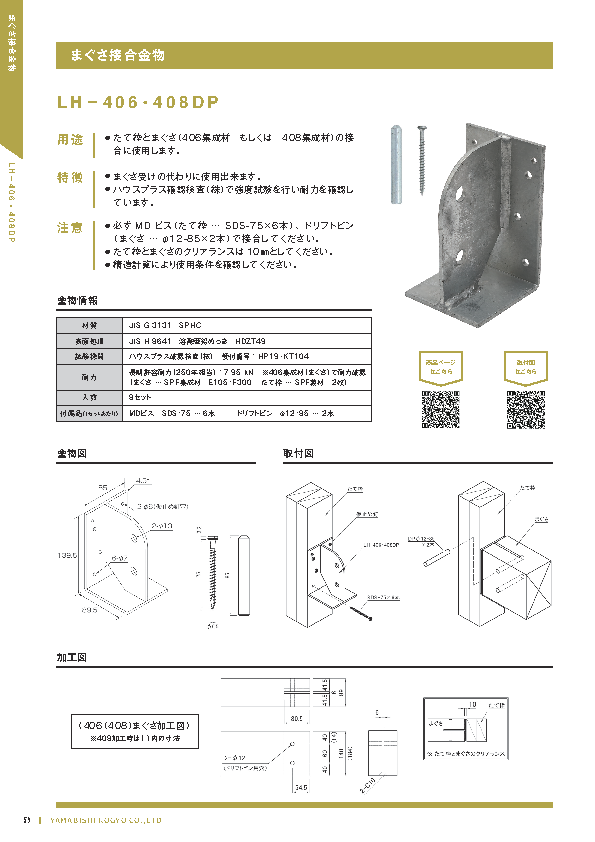 | まぐさ接合金物 | LH―406・408DP | 製品詳細 取付図 | ||||