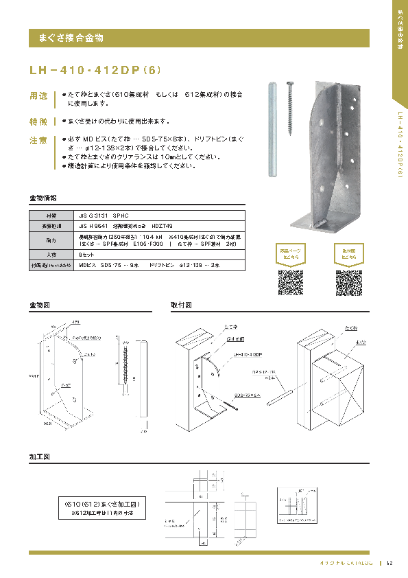| まぐさ接合金物 | LH―410・412DP | 製品詳細 取付図 | ||||