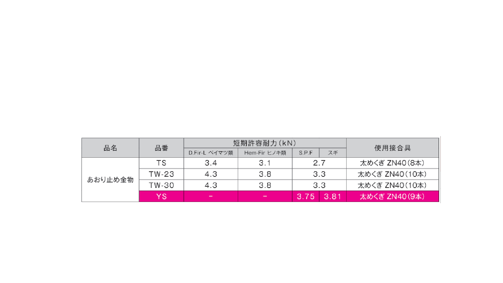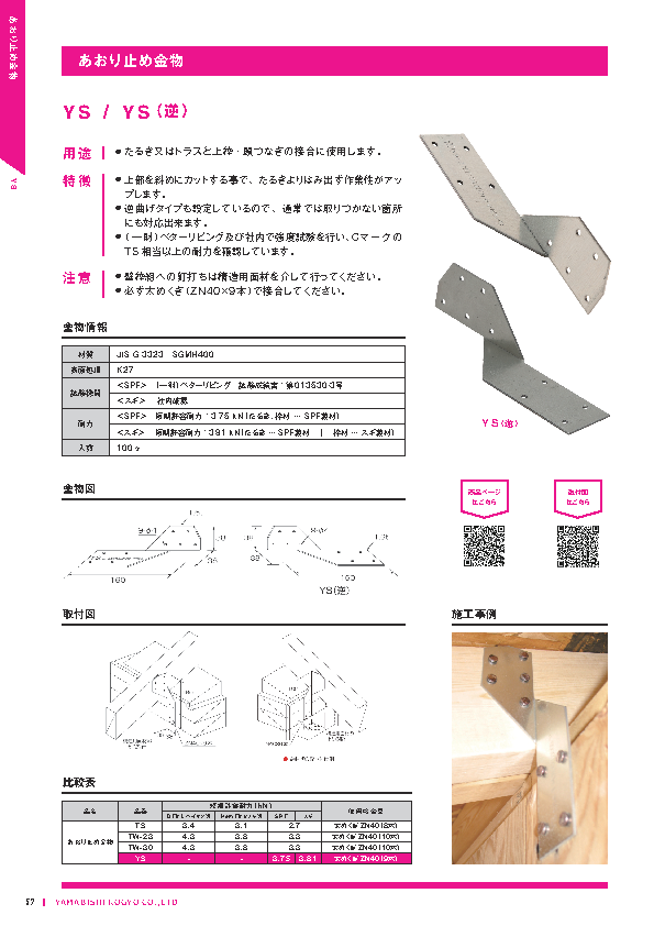 | あおり止め金物 | YS | 製品詳細 取付図 | ||||