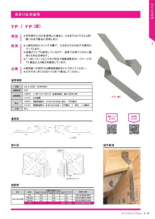 | あおり止め金物 | YP | 製品詳細 取付図 | ||||