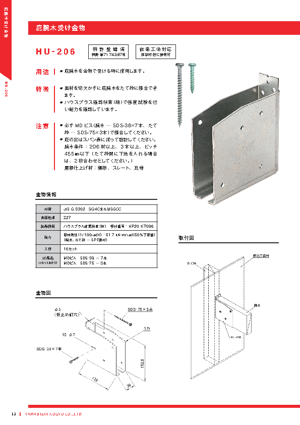 | 庇腕木受け金物 | HU-206 | 製品詳細 取付図 | ||||