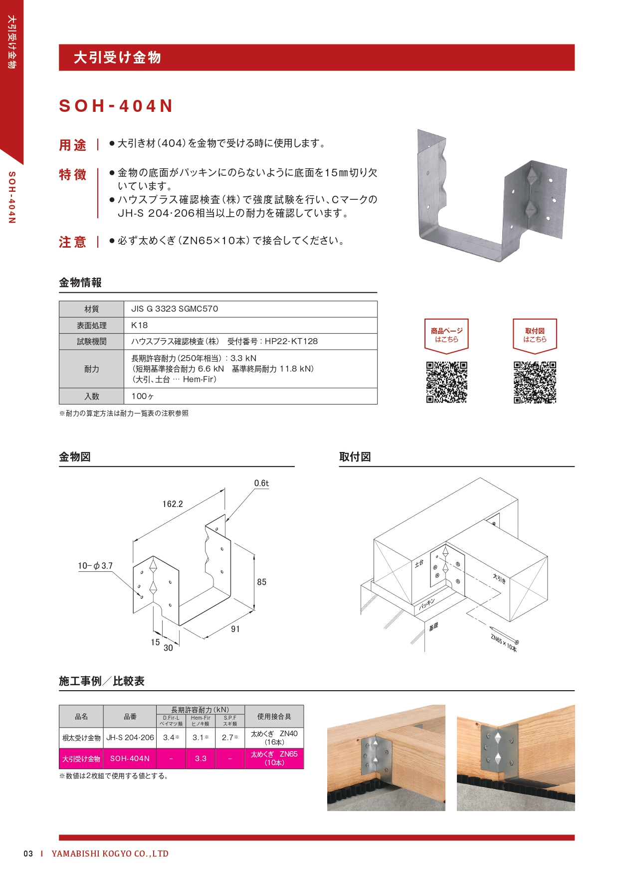 大引受け金物 SOH-404N