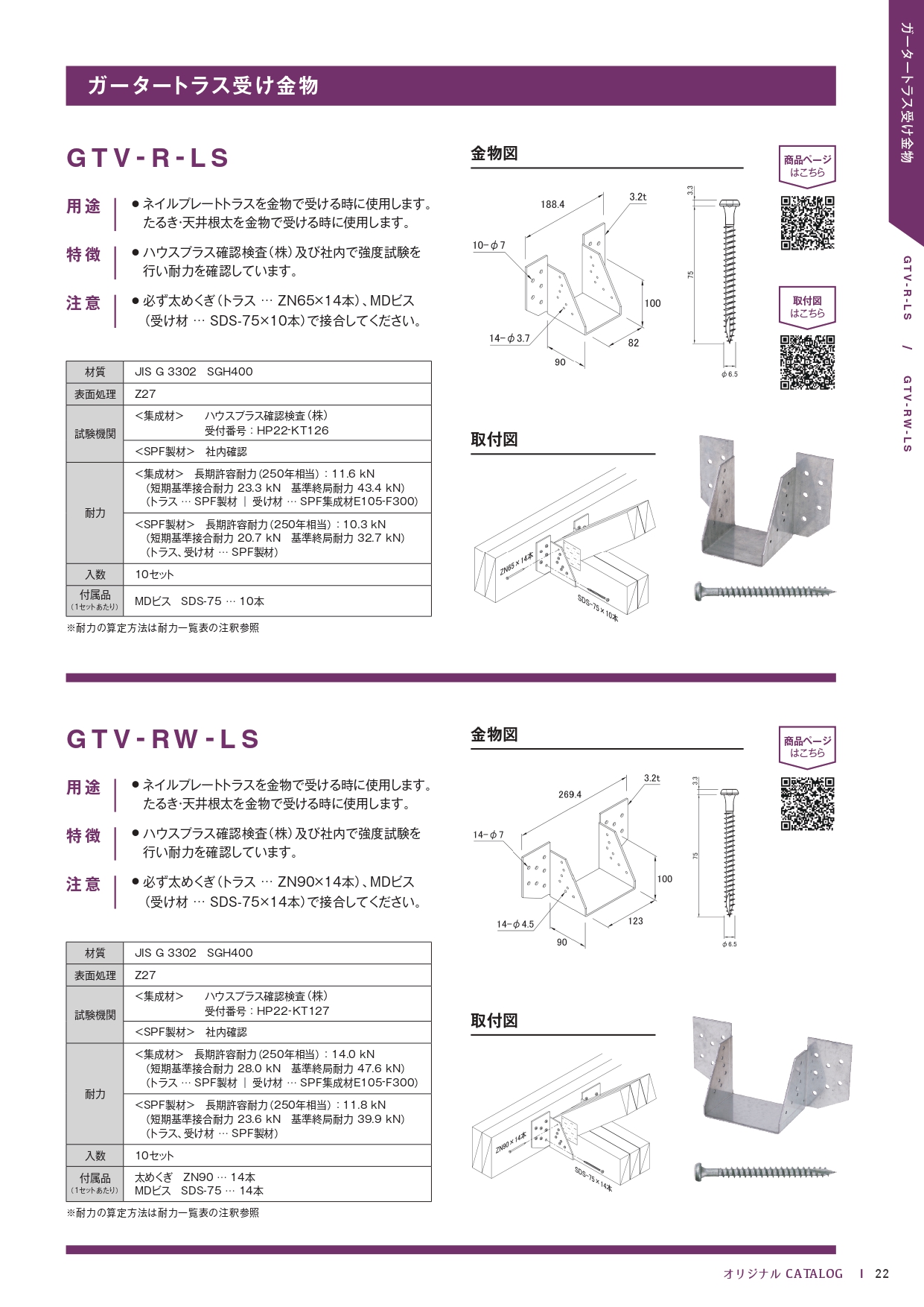 | トラス受け金物 | GTV-LS | 製品詳細 取付図 | ||||
