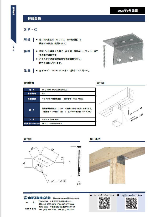 • 短期基準接合耐力:12.0kN ※数値は2枚組で使用する値とする。