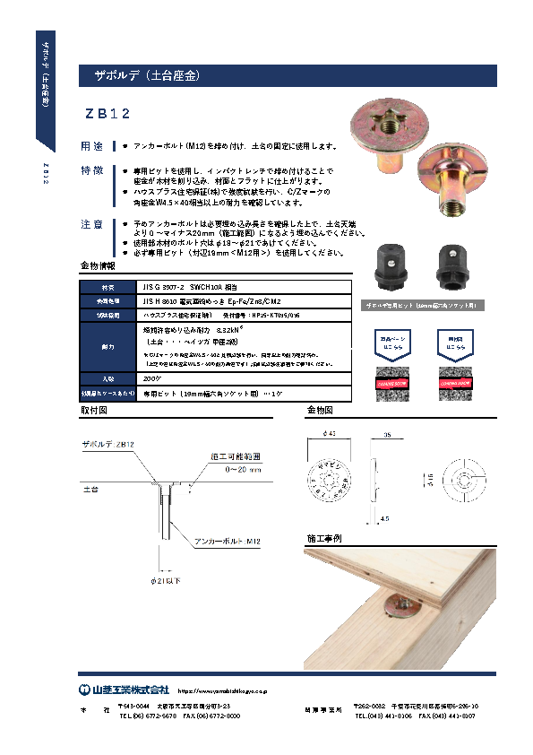 | ザボルデ(土台座金) | ZB12 | 製品詳細 | ||||