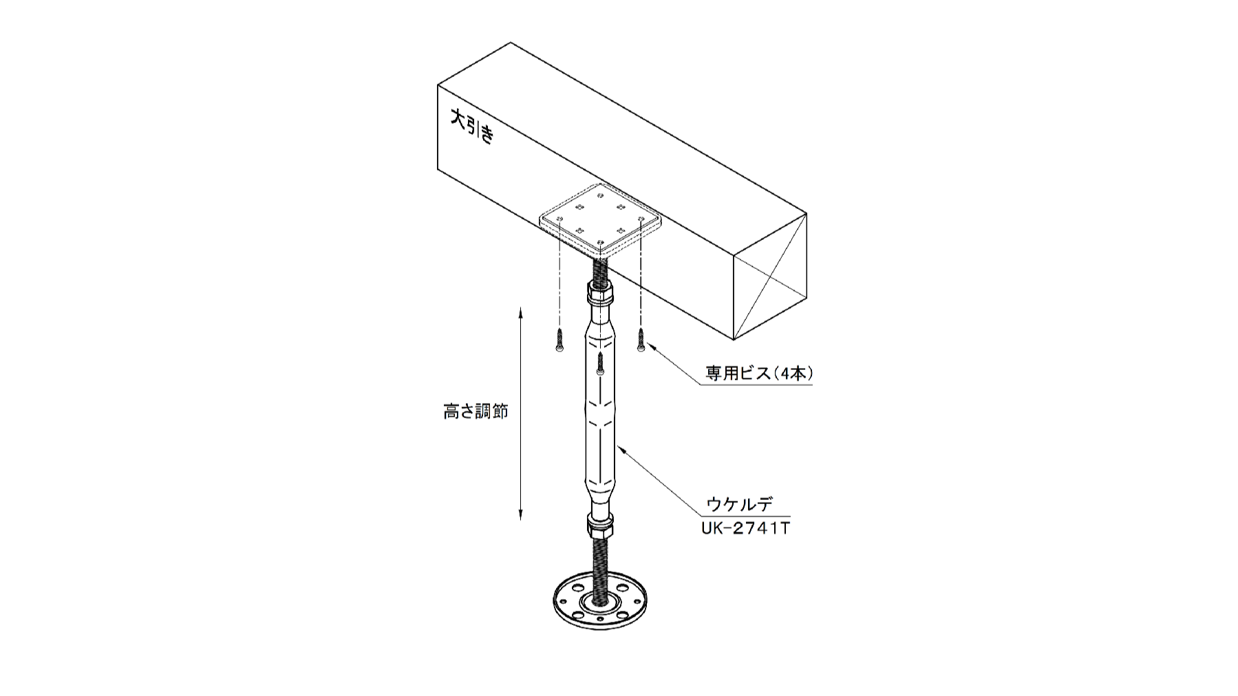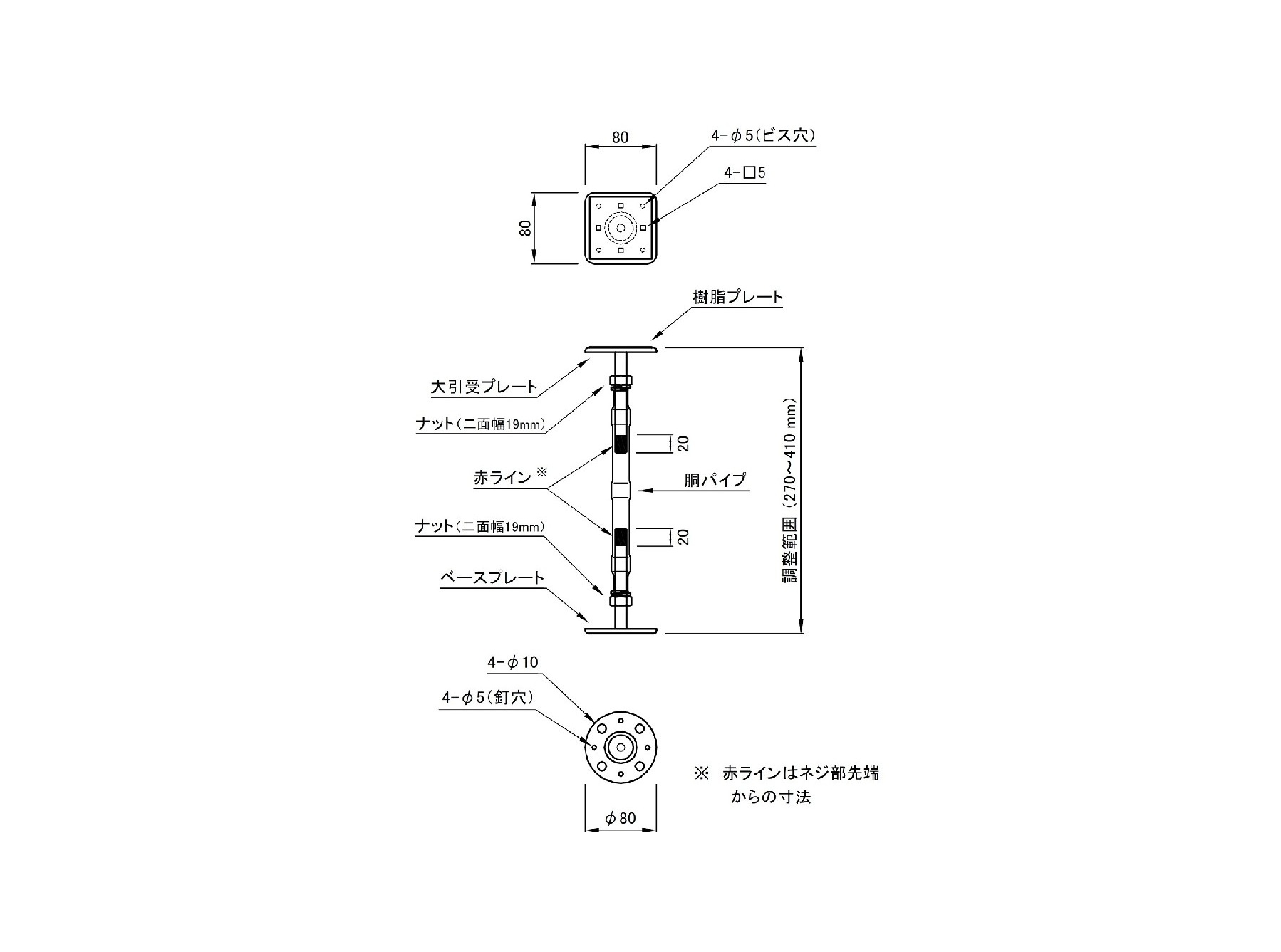 ・ 床鳴りの原因となる為、上下の六角ナットは十分に締め付